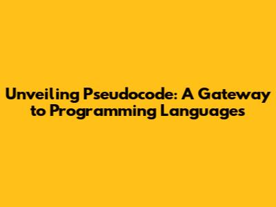 Unveiling Pseudocode: A Gateway To Programming Languages