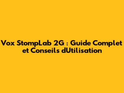 Vox StompLab 2G: Guide Complet Et Conseils D'Utilisation